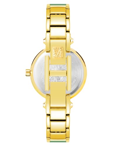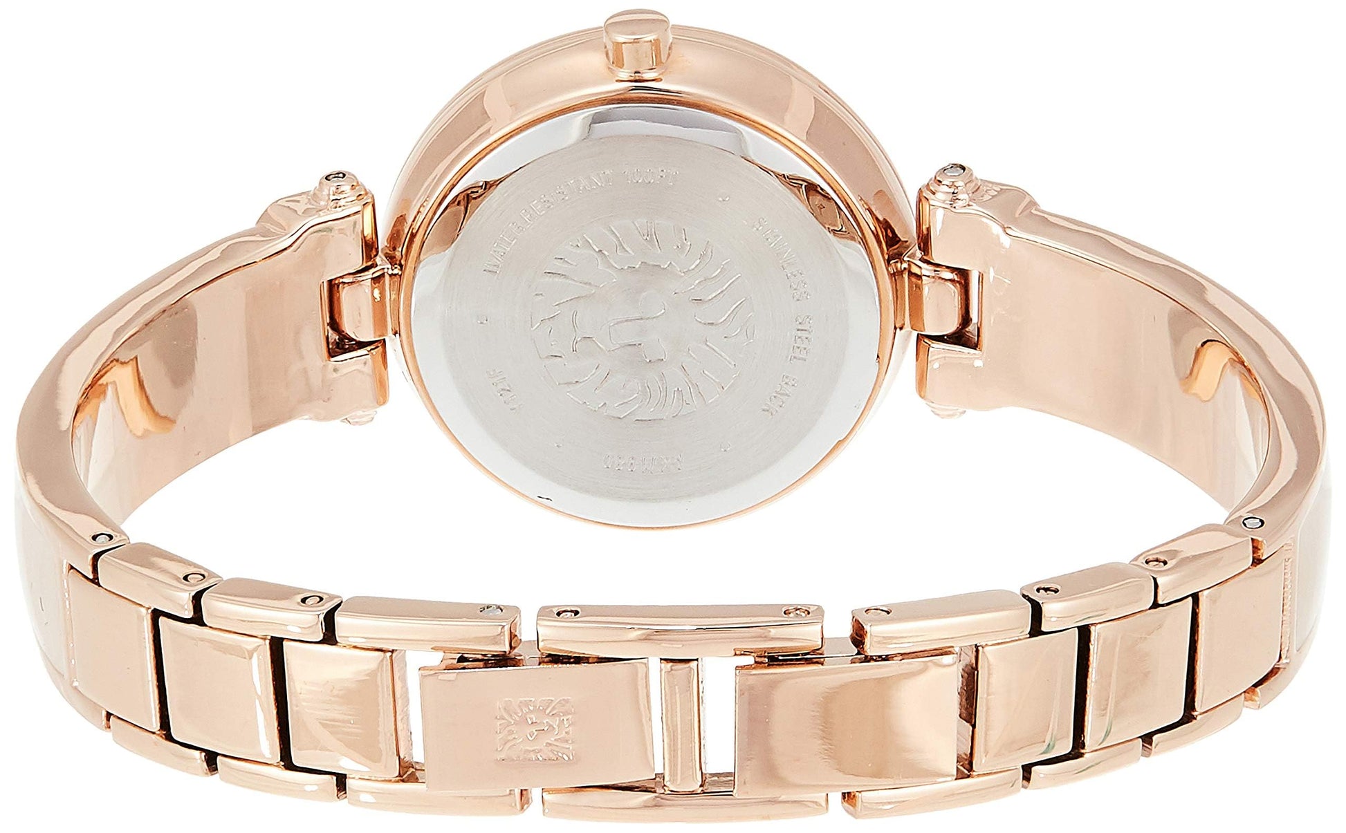 Stainless steel case. Bracelet with jewelry clasp closure. Round face. Three-hand analog display with quartz movement. Hands and hour markers, diamond accent, and Anne Klein detailing. Enamel detailing on bezel. Display case included. Imported.