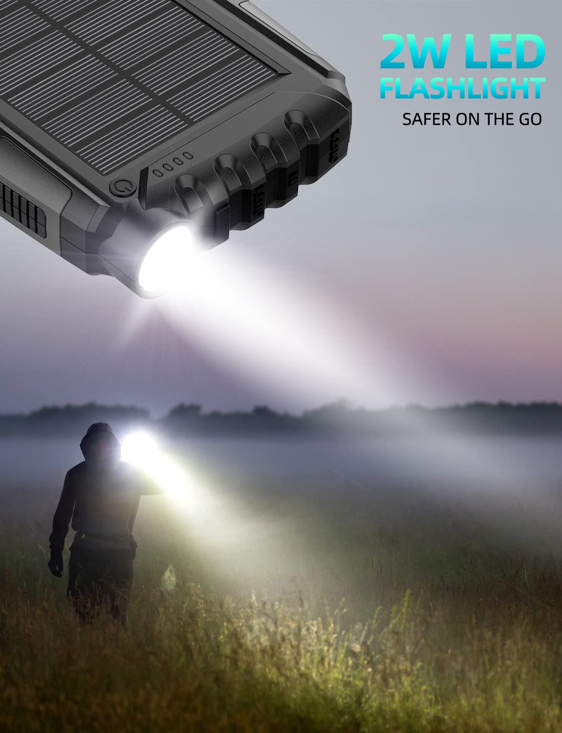 - Solar power bank portable charger uses strong professional ABS material, Chemical resistant, heat-resistant, and has super surface hardness, high elasticity and toughness. IP67 waterproof,drop-proof and dust-proof, so you no longer worry about damage caused by water/drop, the powerbank can work in extreme environments.