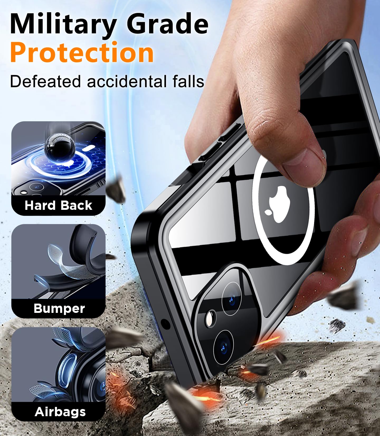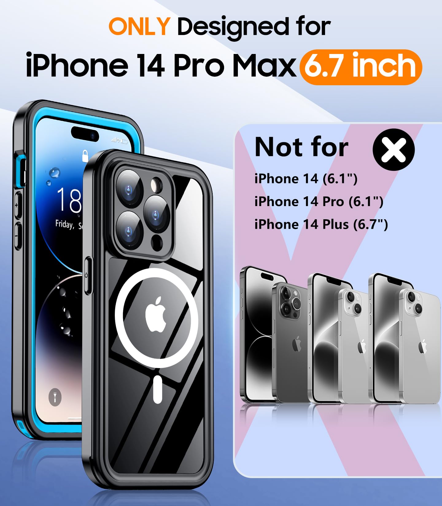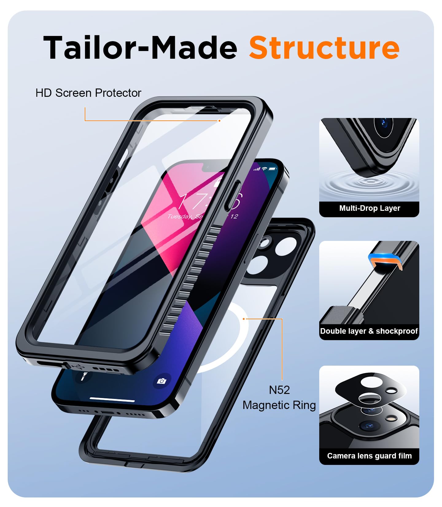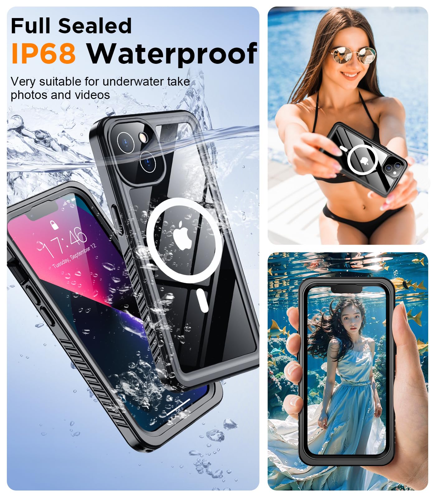 Temdan Magnetic for iPhone 16 Pro Max Case Waterproof,Built-in Screen Protector[IP68 Underwater][Upgrade Military Dropproof][Compatible with MagSafe] Full-Body Shockproof Translucent Case 6.9''-Black