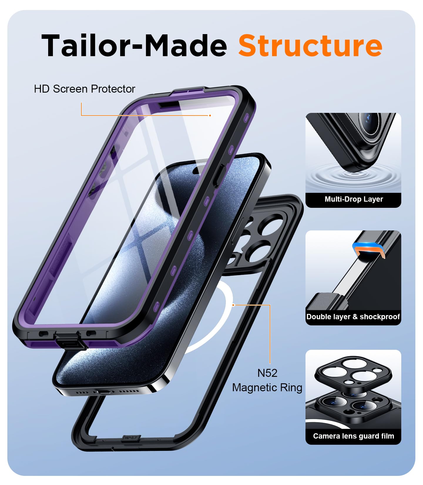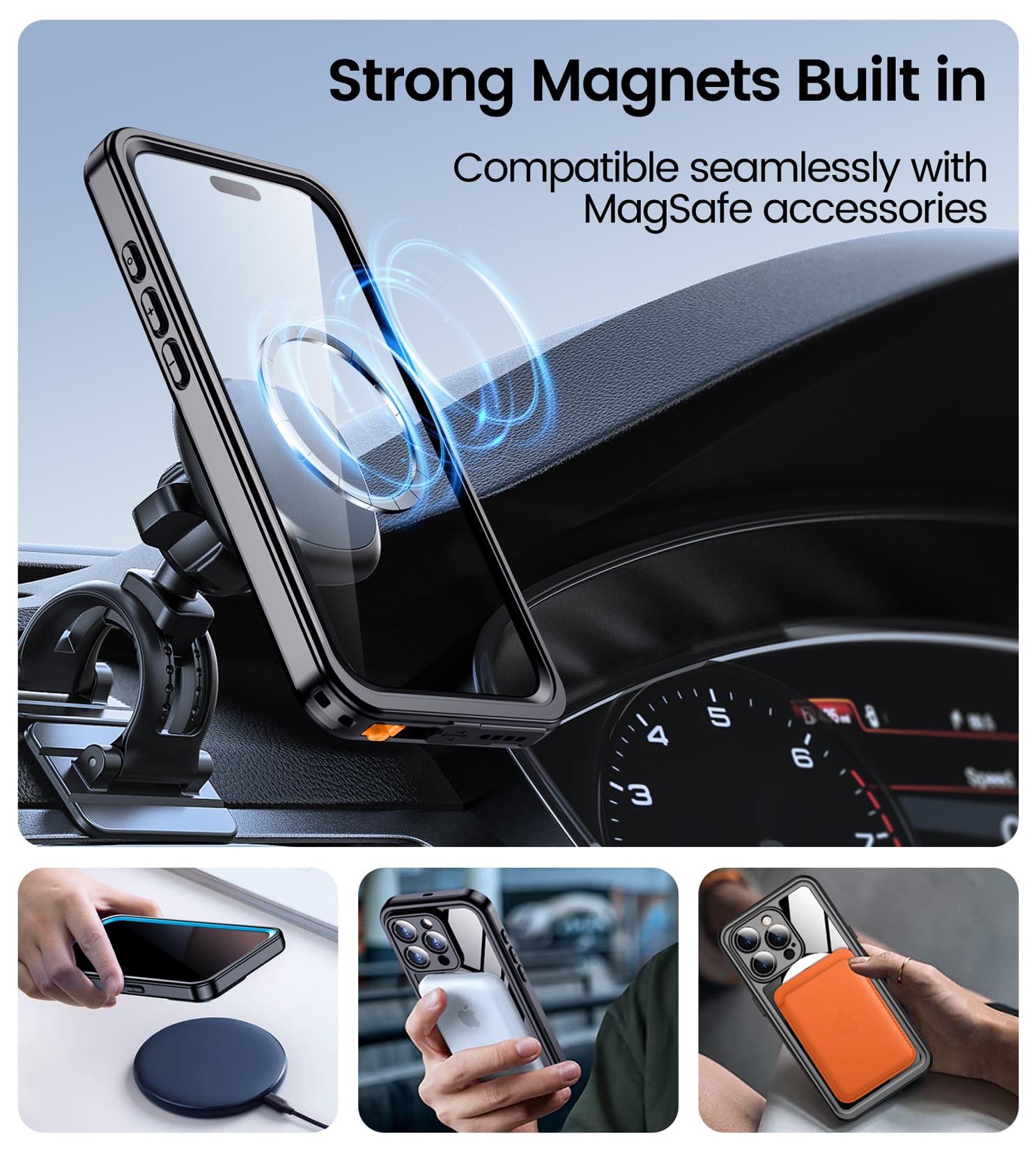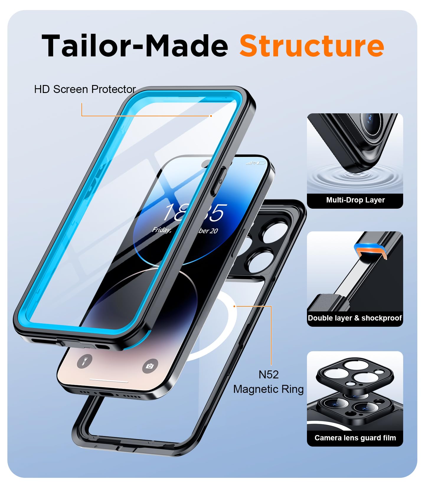 - 【IP68 Waterproof】The iPhone 16 Pro Max case is certified with an IP68 waterproof rating, allowing it to be submerged up to 10ft/3m for one hour while providing protection against dust, dirt, water, snow, and rain. Its comprehensive body protection design enables underwater photography and videography. Additionally, the washable feature facilitates easy cleaning, ensuring that both your phone and case maintain a pristine appearance while safeguarding against scratches and fading