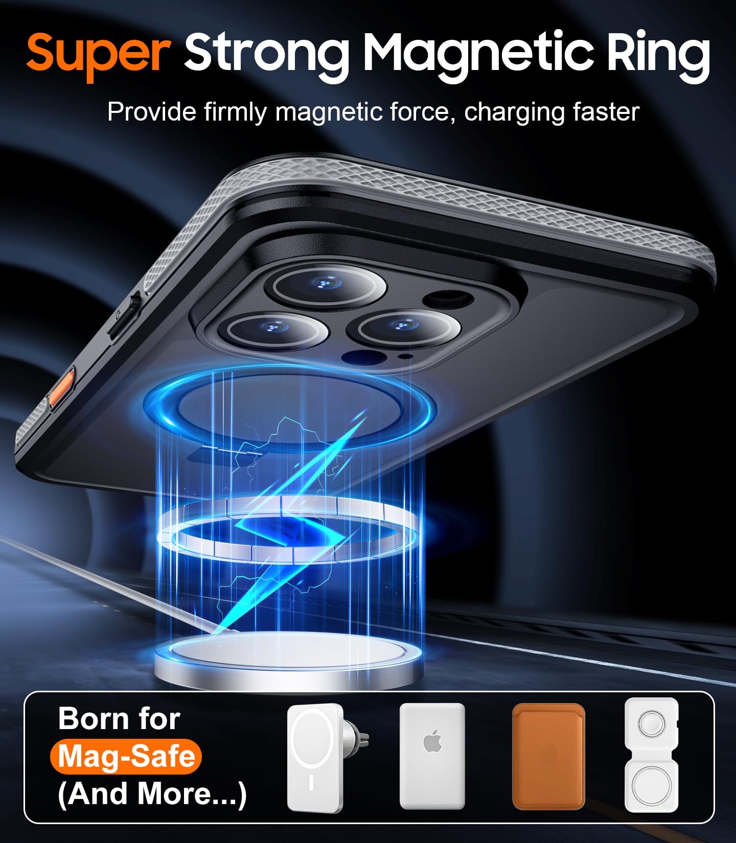 - 【Strong Magnet & Secure Grip】The Temdan MagSafe-compatible case for the iPhone 16 Pro Max features a robust magnetic ring that enhances connectivity with most MagSafe accessories such as wireless chargers, magnetic car mounts, battery banks, wallets, and more. This allows you to charge without removing the case; perfectly aligned magnets facilitate faster and easier wireless charging than ever before while providing a secure grip