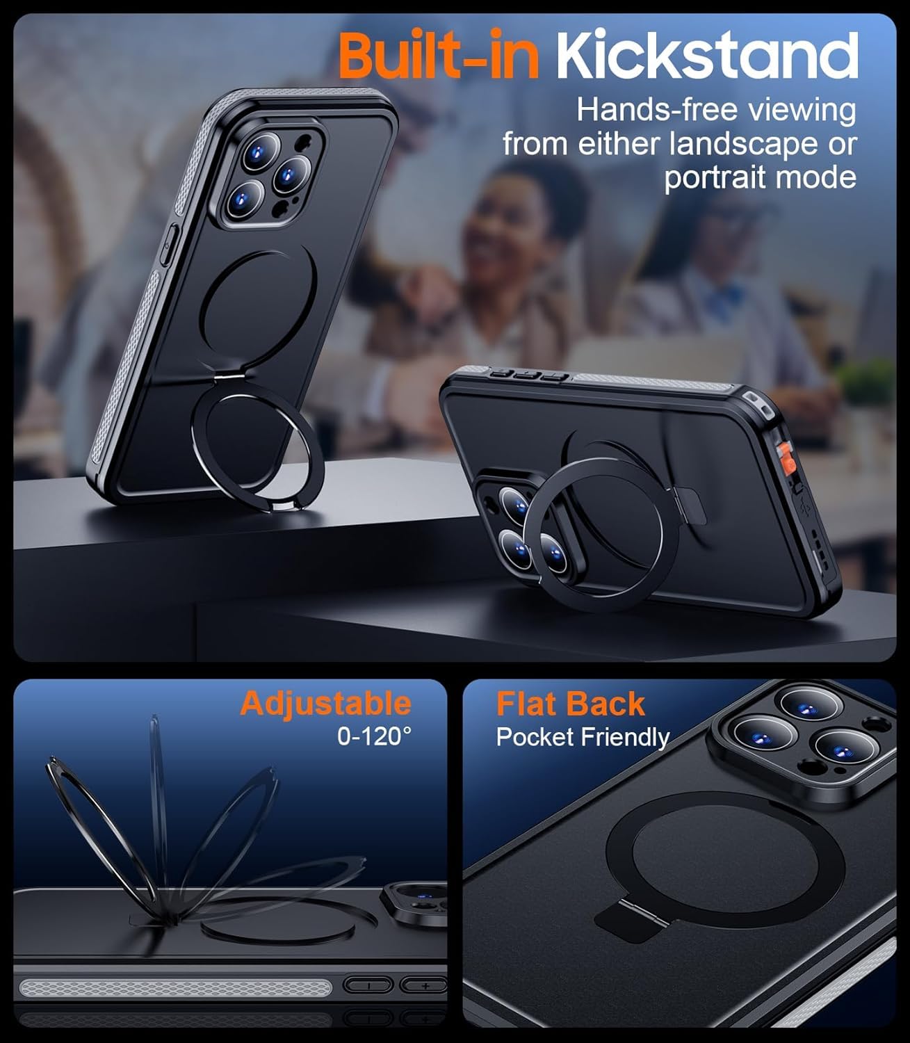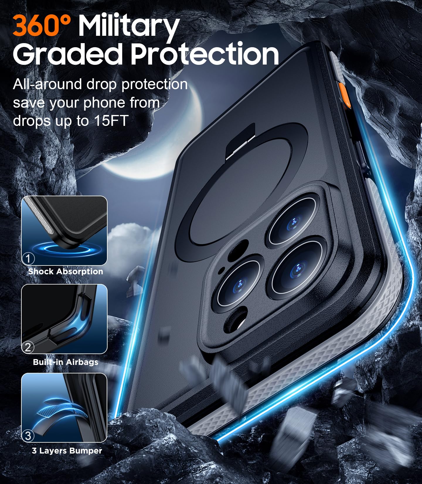 - 【360 Full Body Protection】The iPhone 16 Pro Max shockproof case has been rigorously tested to exceed Military Grade Drop Test standards. Constructed from premium TPU/PC and PET materials with a specialized double-layer frame, this case guarantees maximum durability without yellowing over time. The four anti-collision corners are designed to disperse up to 99% of impact force, effectively protecting your device from damage. Furthermore, this durable iPhone 16 Pro Max case includes a detachable lanyard to prevent accidental drops